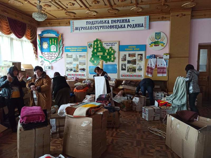 В Будинку Культури Мурованих Курилівців обладнаний «штаб» для допомоги переселенцям, а також збору допомоги для наших захисників. Керує даним штабом Валентина Миколаївна – не тільки приємна і творча особистість, адже є начальником відділу культури, молоді та туризму, але і чудовий координатор цього штабу.